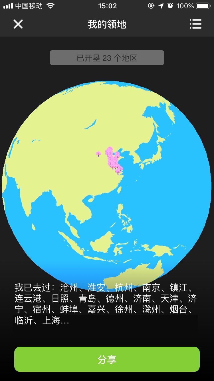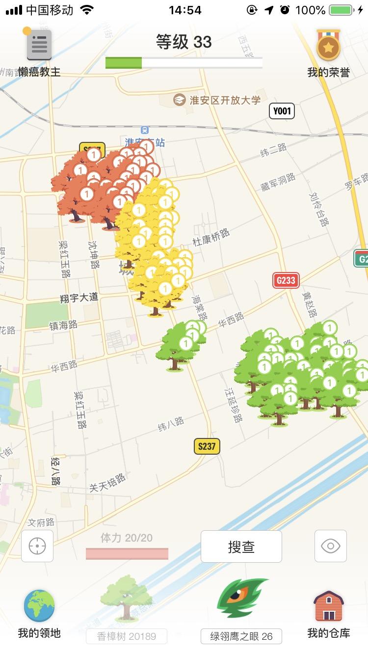 这游戏是我旅行专用app,就是每次出门到一个新的地方都会第一时间打开来在上面种树。大学的时候去了好多地方:南京、上海、杭州、天津……可惜之前去过的地方种不了了……
