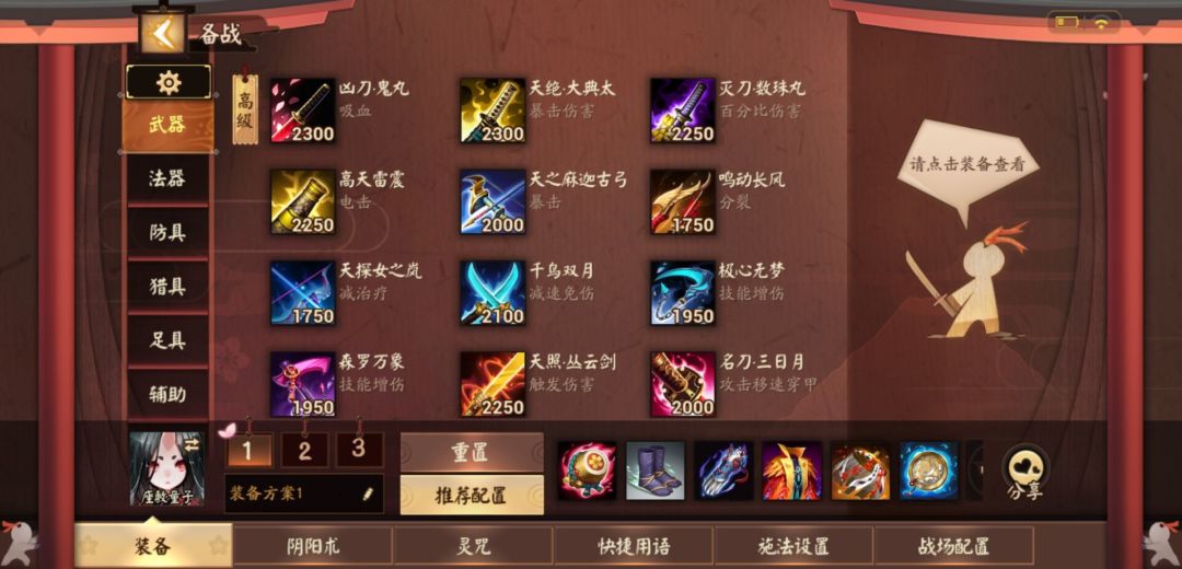 首先是装备和阴阳术奉上