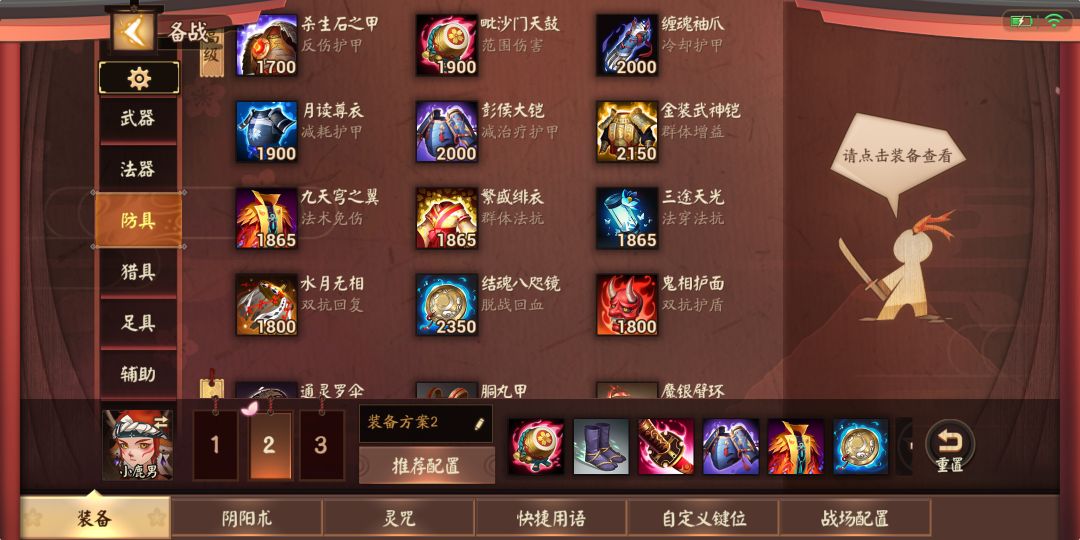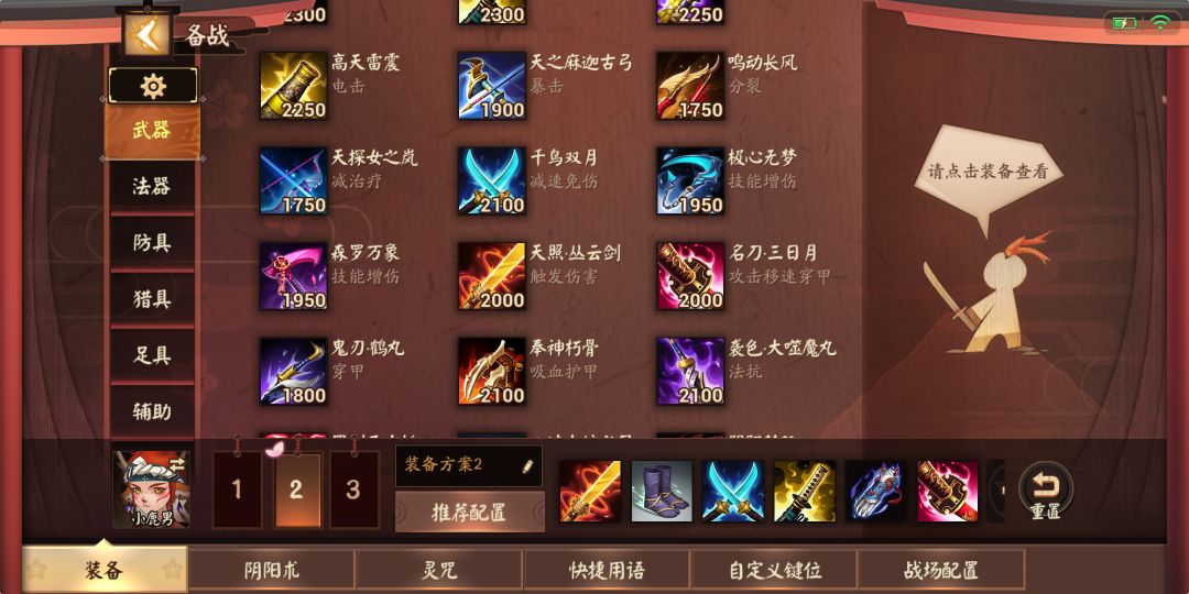 这套出装属于常规出装,名刀三日月是一件非常全面的装备,并且刚接触小鹿的玩家前期控制不好蓝量对此也有帮助,鞋子不用多说看阵容,后面都是常规肉装,如果对方没有回复能力特别强的式神,建议第二三件就可以出缠魂袖爪,这件装备的被动是施放完技能下一次普攻对地方造成减速并增加自己移速与名刀的加伤也可以叠加,加上频繁的使用技能,往往会有很大用处,这套装备的打法核心就是最大化输出,用完技能后记得接一次平a,开启一技能后一定要粘上别人,二技能三技能的百分比伤害也很高,逼出对方位移之后接大招和一发平a完成斩杀,如果对操作不太熟练可以带上侵蚀增加击杀概率,在对线期要利用护盾以及手长优势完成换血消耗等。
