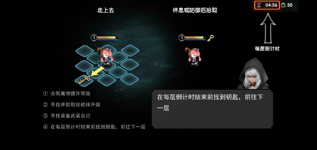 第四层.刚进入本层时,本层小部分小怪具备秒杀你的能力,所以,还是先苟经验,苟装备,伺机击杀其他玩家(当心被反杀,能玩到这一层,操作都不会太菜),除开小部分高玩来说,本层生存压力极大,苟着听天由命是没有前途的,有机会搞事就搞事,哪怕你活不下去,只要能先搞死别人,你就是胜利者。95%以上的对局结束此层及更低层