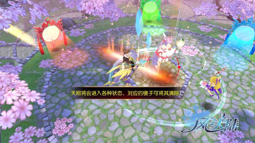 血量降低之后,天照会开始给自己加各种状态,此时场上会开启3个镜子,对应解除天照的三个状态,将天照引至镜子处,可以暂时解除她的状态。
