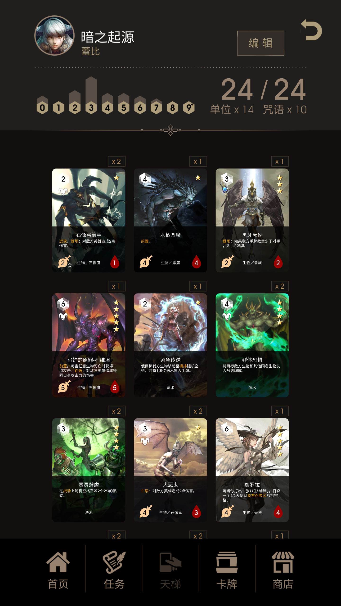 对战莎莉亚基本没有问题,每回合至少比对面多一费,几回合后莎莉亚就开始力不从心,无论是手牌或者费用都跟不上你的铺场抢血节奏,基本上都是轻松获胜。