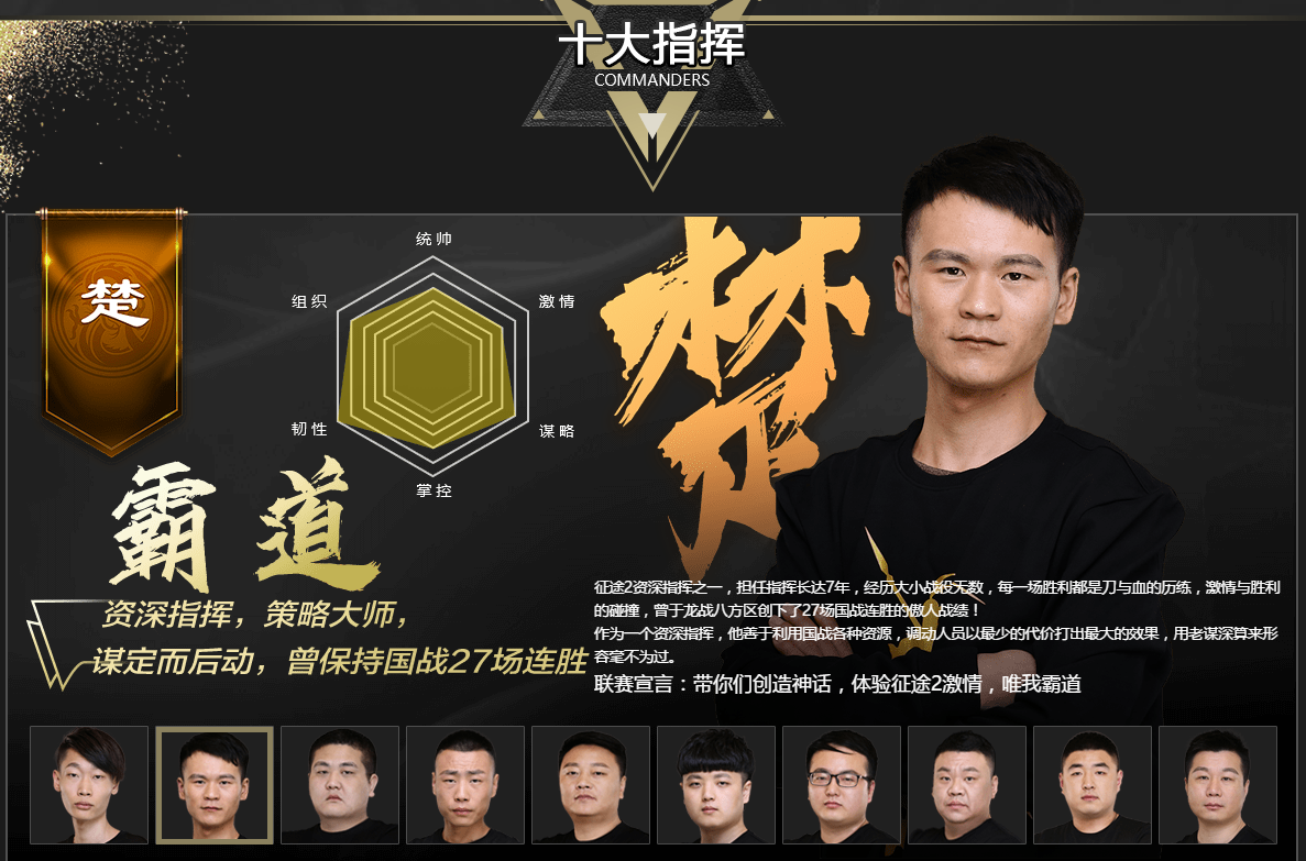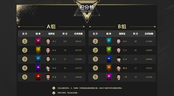 在“黄金国战联赛”中,所有同服玩家都可加入,这完全有别于传统电竞中常见的小团队作战模式。赛制上则是借鉴了NBA,作为核心选手的指挥将带领自己的国家参与“常规赛”“季后赛”以及AB分区之间的“总决赛”。
