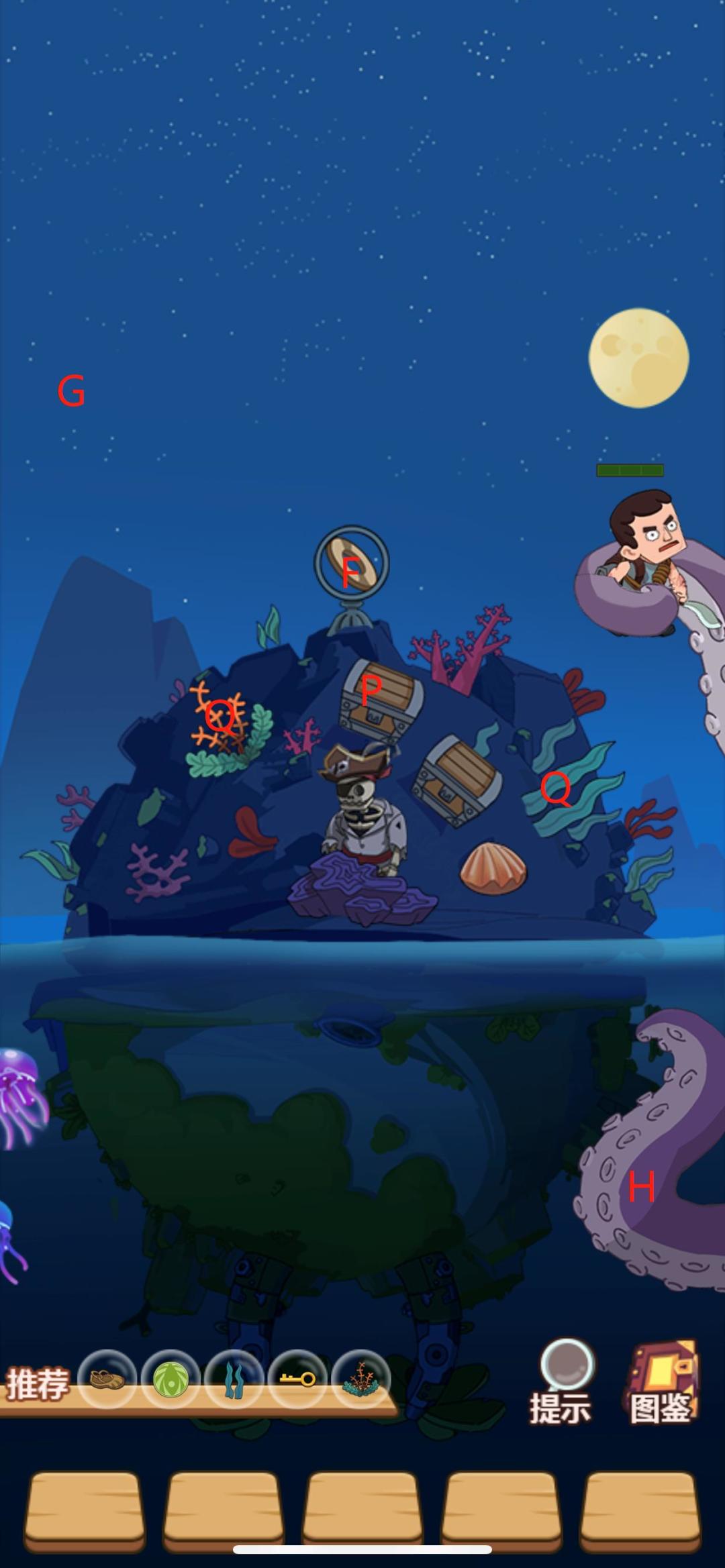 望远镜,酒杯,信件,水手鞋(这个没有刷出来,从道具位置看就是位置P的)