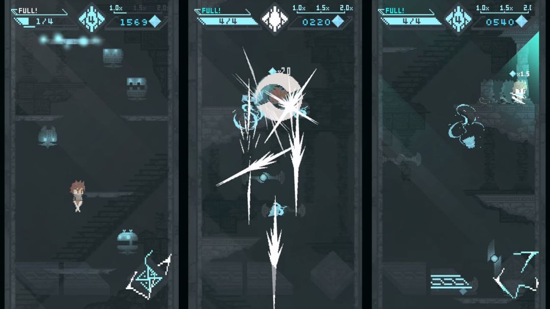 本作保留了《Downwell》的基础机制及流畅明快的游戏風格