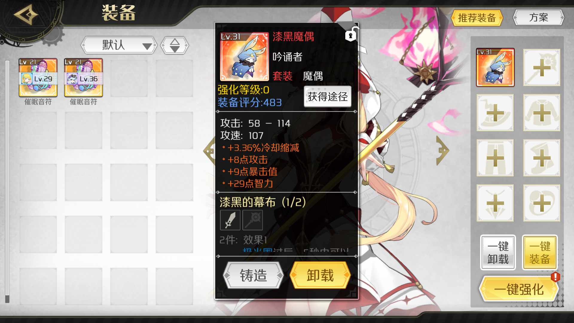 2.达到攻速阈值后归零重新计算。这个阈值具体多少我也不知道,大佬200多攻速的我也见过,我在想会不会是加上布偶后攻速到了阈值,然后奶妈的攻速归零,装备不归零,所以最后显示的112就是装备的属性值加上传承的加成112=107+107*n%