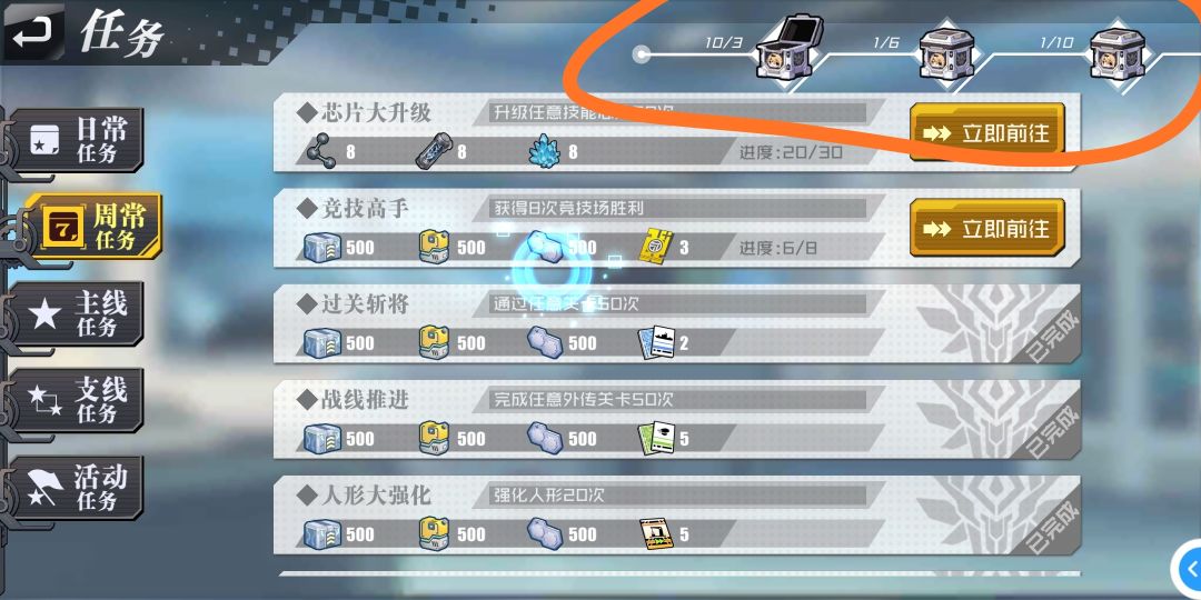 1.日常、周常任务已经在更新前完成十项+,但宝箱奖励没有跟进,如图