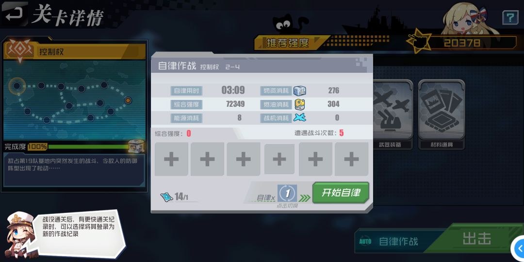 3.打2-6后,自律提示登陆战绩,也没考虑就选择了(用的一队,高战高消耗),而想自律时却不能用低于这个战力的,实测三队也能顺利通关,但并不更新低成本自律条件…只有用时最短才会提示登陆么?