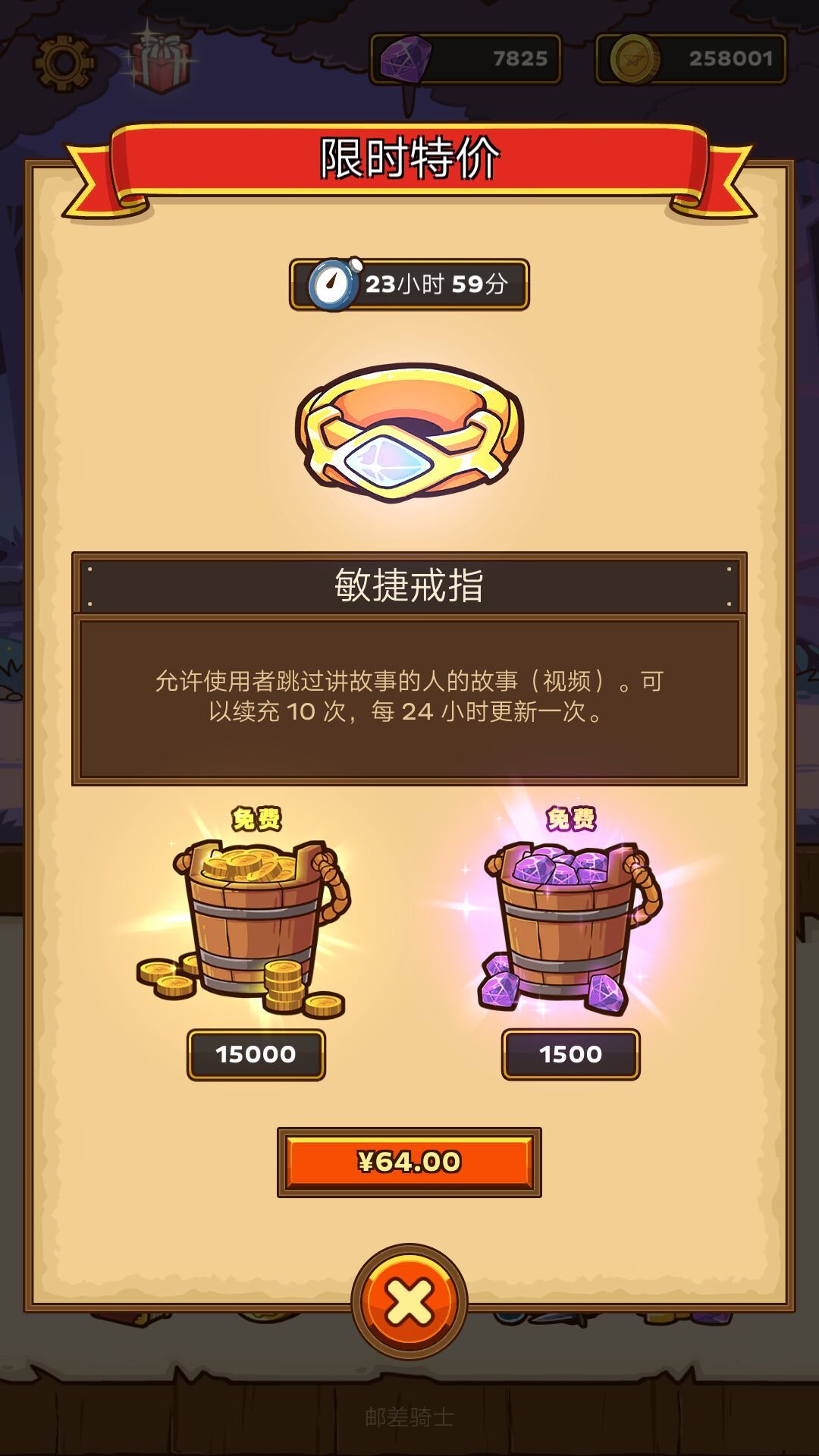 一定已经有人在游戏里遇到了一个敏捷戒指的礼包,这个戒指可以每天十次免广告!礼包还送1500个宝石!!看起来非常有诱惑力对不对?!!!