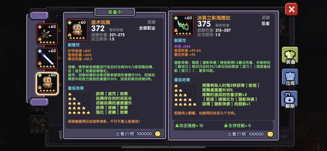 在过去的版本中,由于boss的简易以及输出环境的优越。忍者带上玩偶是有一个很高的输出提升。所以他的负面效果,忍者自身的受到伤害提升15%的这个缺点就被放小了。 由于开了150层和世界boss的出现。忍者也开始考虑生存的时候。玩偶这个武器的选择就可以成为考虑置换的范畴之内了。