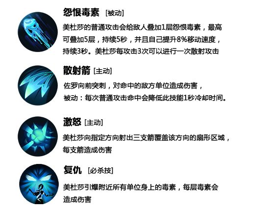 美杜莎是一个需要不断走位拉扯的后期射手型英雄,攻击需要叠加buff层数,一定时间才能爆发伤害。