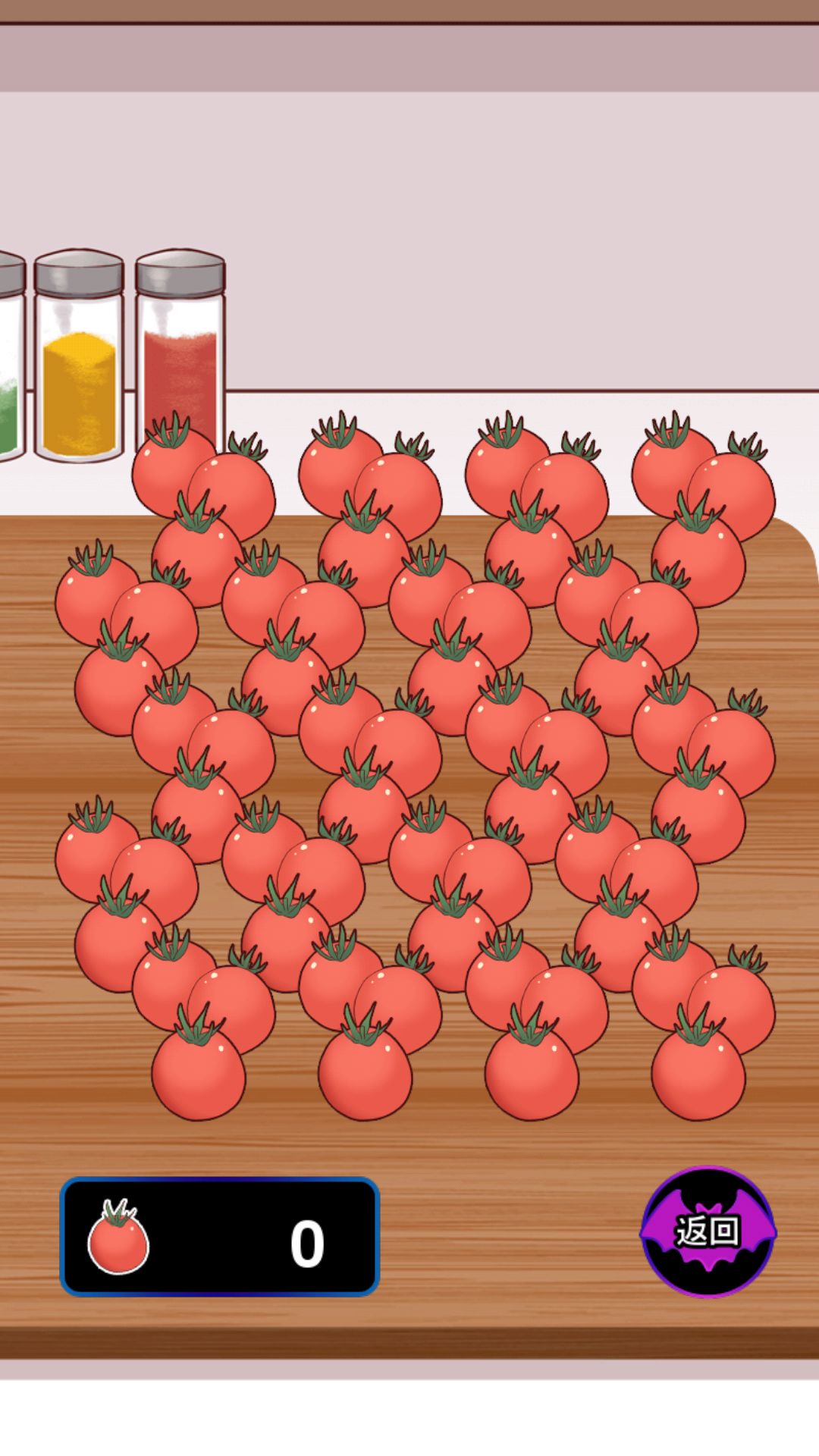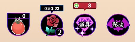 屏幕最下方的四个按钮分别代表【赠送圣女果】【赠送玫瑰】【额外环节】【收集圣女果】。