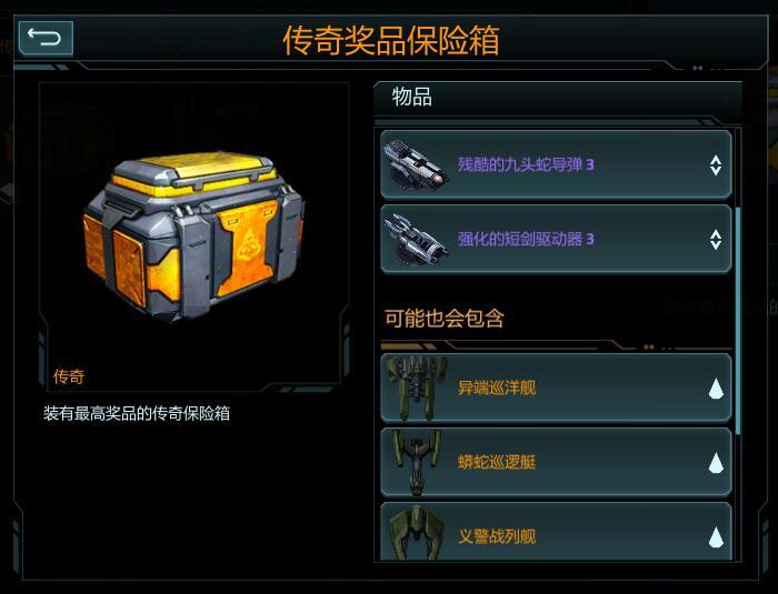 传奇奖品保险箱:将有几率开出超级武器与铁星系列战舰!
