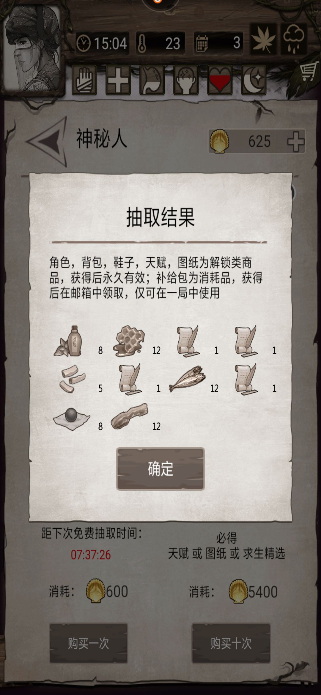 这次赞了好久的贝壳来了一次10连,出了手枪,麻醉针,平底锅,研磨器图纸。