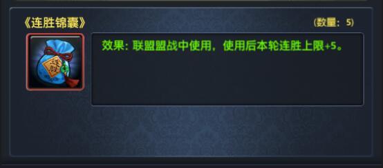 效果:使用该锦囊后,使本轮战斗连胜上限+5(一般情况下,门客连胜上限为5次)
