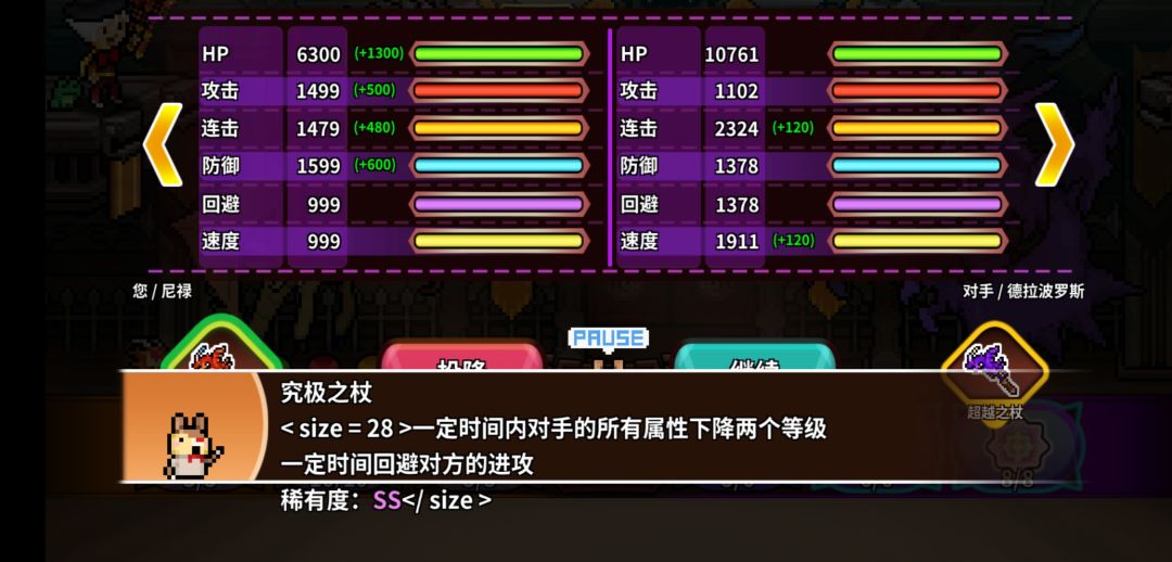 首先,也是最难的一点,在锻造师那边买到反击并且减对方全属性的龙杖(商店的反击也可以,但没这个强)