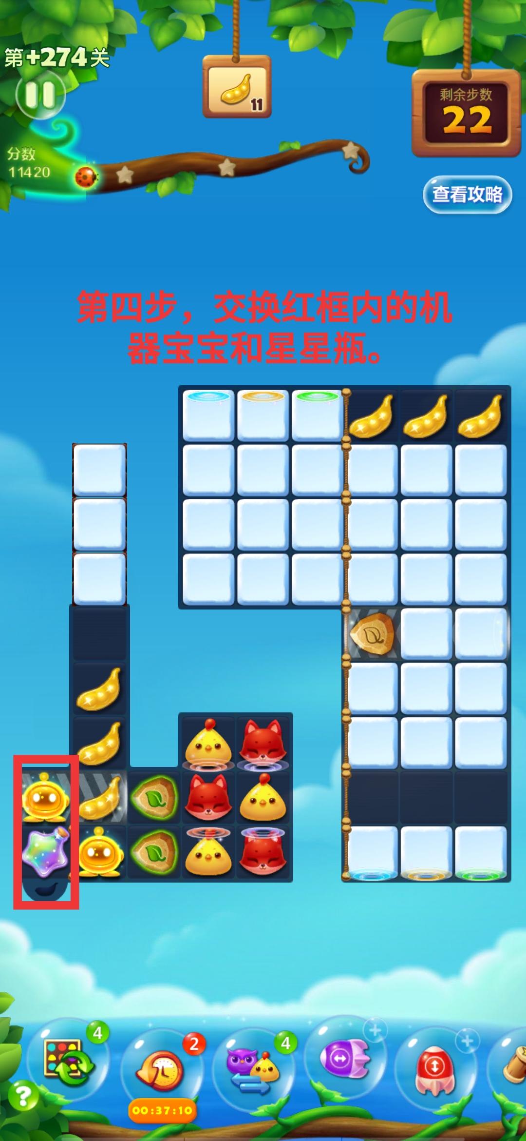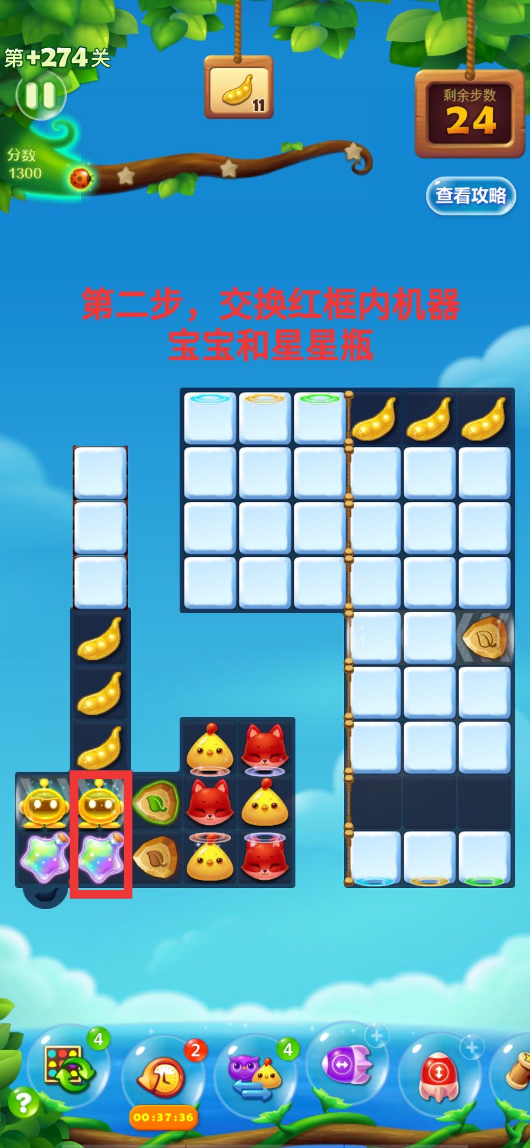 第二步,交换红框内的机器宝宝和星星瓶