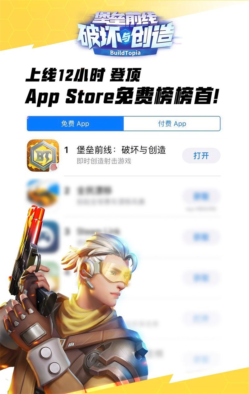 自网易首款即时创造射击手游《堡垒前线:破坏与创造》(BuildTopia)曝光以来,便获得了业界与玩家的关注。作为2019年最值得期待射击黑马,《堡垒前线》5月17日IOS独家首发不到12小时,即荣登App Store游戏免费榜榜首。