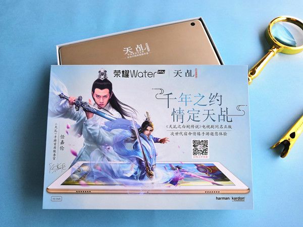 《天乩之白蛇传说》手游与荣耀品牌合作推出定制版平板电脑——荣耀Waterplay防水影音平板,售价2399元,具有IP67级防尘防水、哈曼卡顿音效及9V2A快充功能,让玩家无论何时何地都能用它充分享受《天乩》手游四时轮转、气候变迁的沉浸式唯美世界。