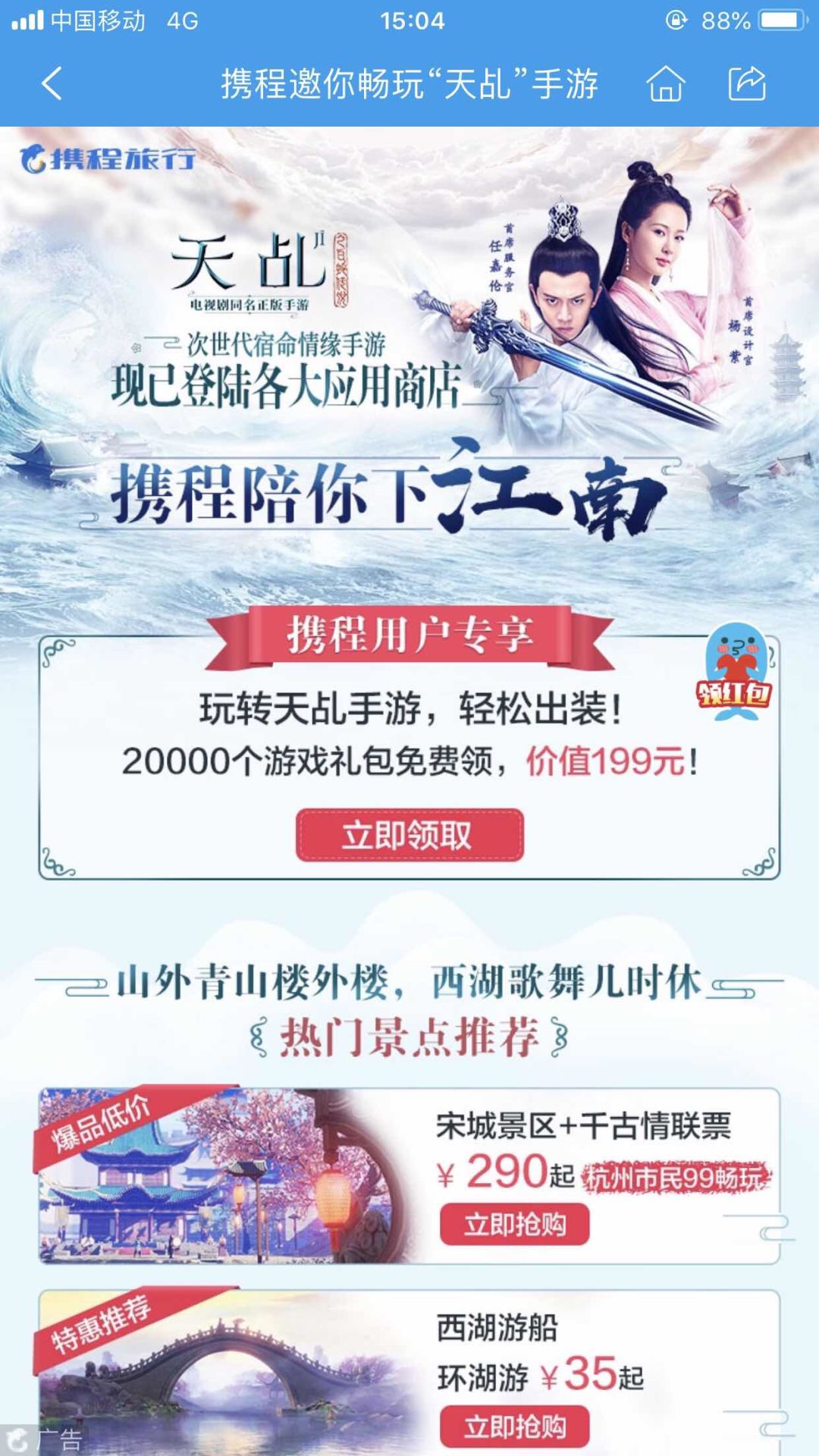 《天乩》手游vs携程——独家联合活动