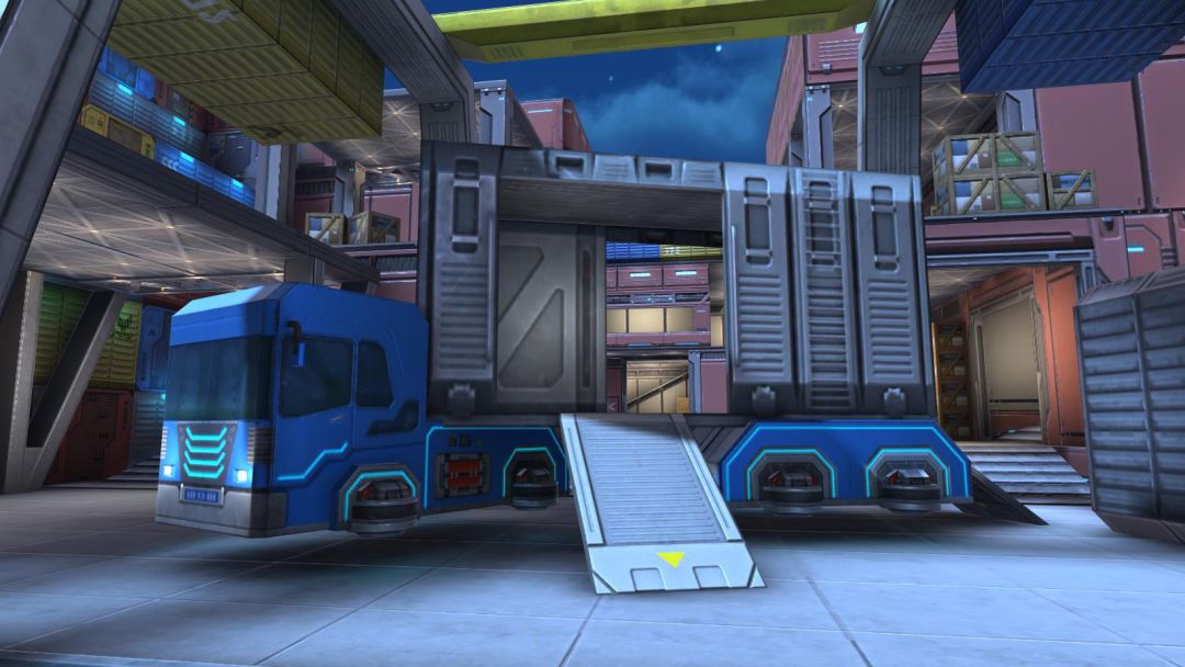 新地图“货运码头”使用了最新版本Unity改进过的预渲染光照系统,配合新的标准材质,让整幅地图中的材质更为真实。全图采用基于物理规则的渲染,通过反射探针与光照探针模拟实时打光,在最高游戏画质下,可以达到近乎真实的光照效果。