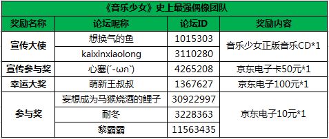 《音乐少女》星梦首测所有活动已于2019年3月26日23:59分结束。经过我们的努力获奖名单已整理完毕。为了保证各位可以尽快领取奖励,请及时使用获得的论坛昵称和ID在本帖下回复活动名称和您的QQ号码,以便我们为您登记领取奖励哦~~~