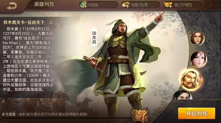 英雄迷们在更新到最新版本的英雄杀之后,点击英雄列传就可以看到新列传【铁木真关卡-征战天下】啦~