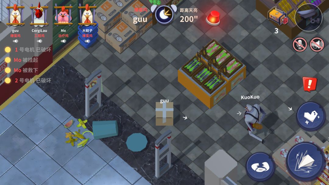 (2)开放新机关:垃圾桶 。 逃生鸡能够将垃圾桶打翻,垃圾在地上持续一段时间,遍地的垃圾能够滑倒守夜者。