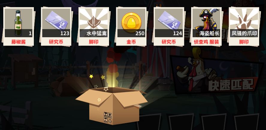 lv.3档案:获得大量 金币,研究银券,羽毛/调味料,武器/脚印,一定概率获得皮肤。