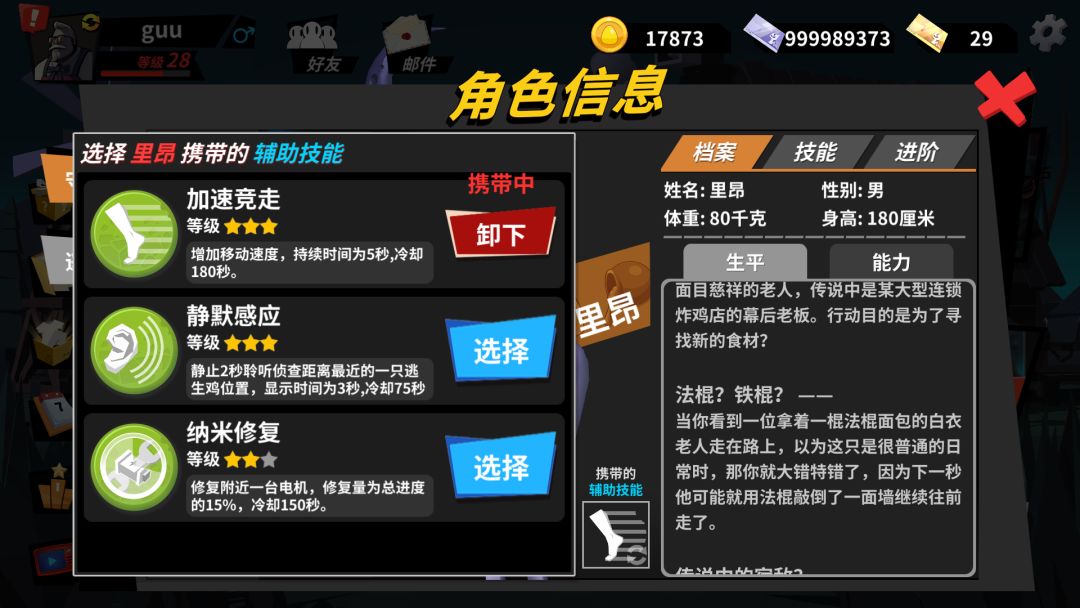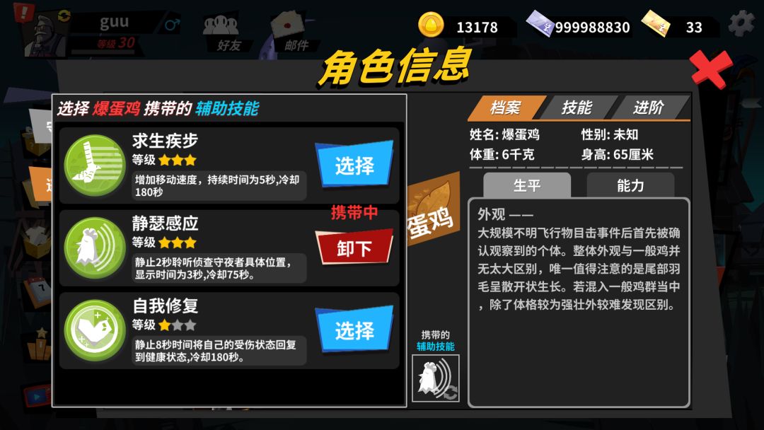 四,逃生鸡 和 守夜者 的辅助技能系统: