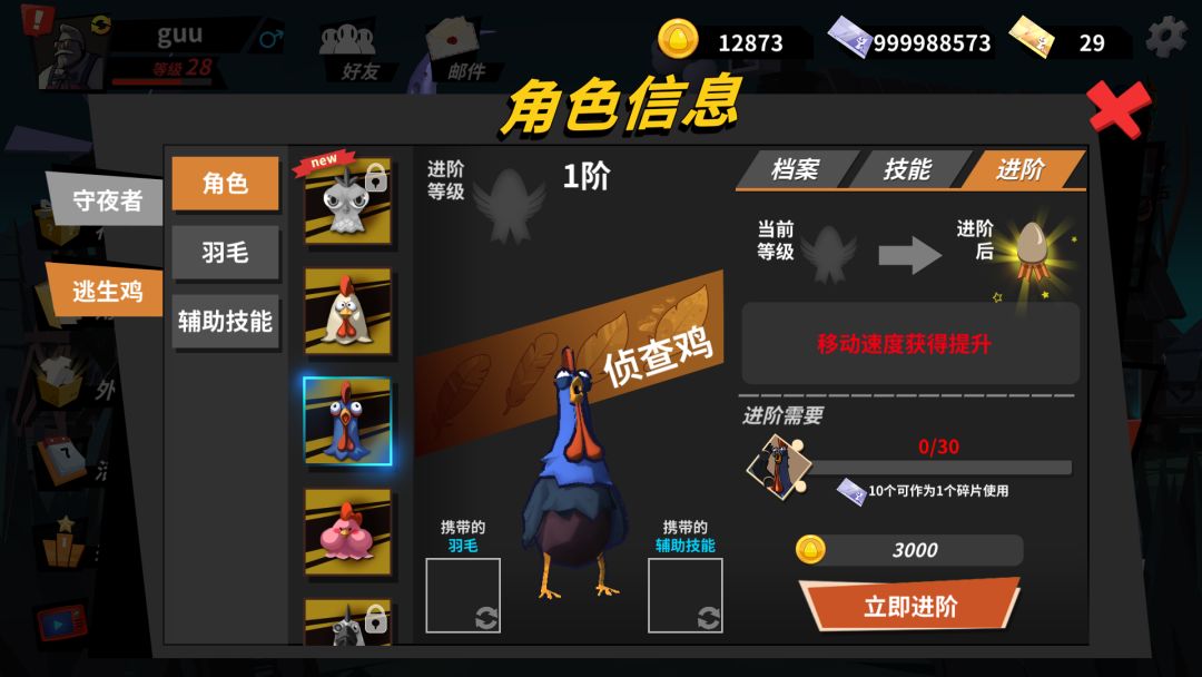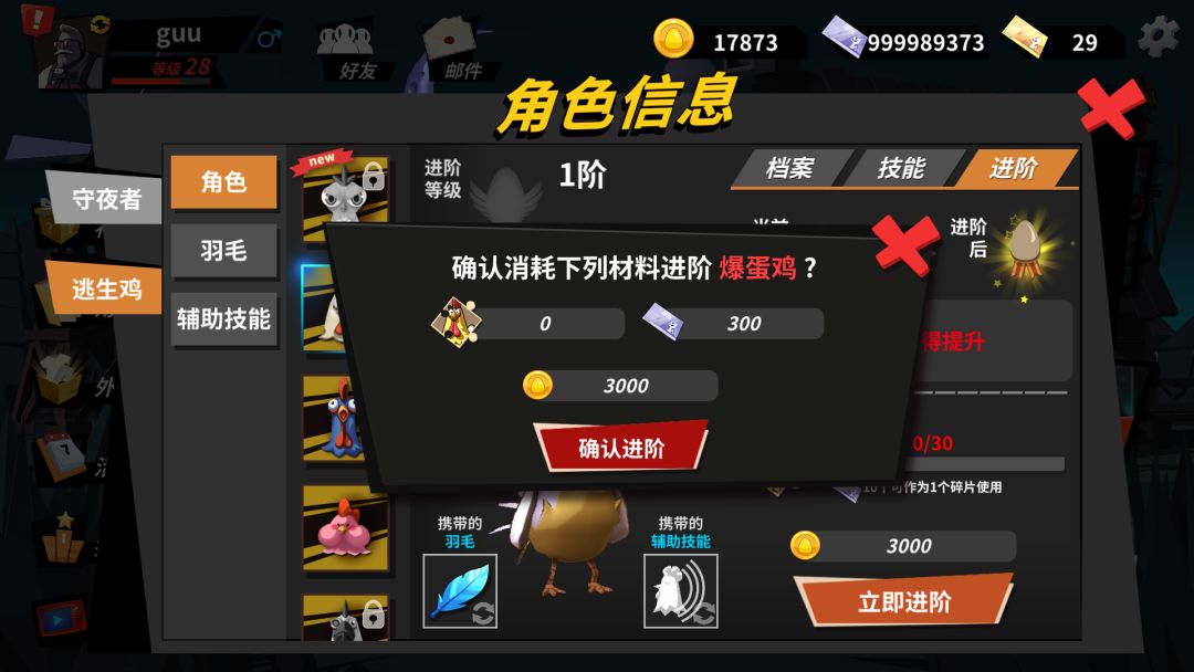 (2)角色进阶系统:由原来的2阶,提升到4阶段。(原角色的进阶进度 会按照 总进度的阶段帮玩家提升。例如:原1阶的爆弹鸡,在新的进阶系统上,会提升到2阶。满阶角色,依然是满阶。)