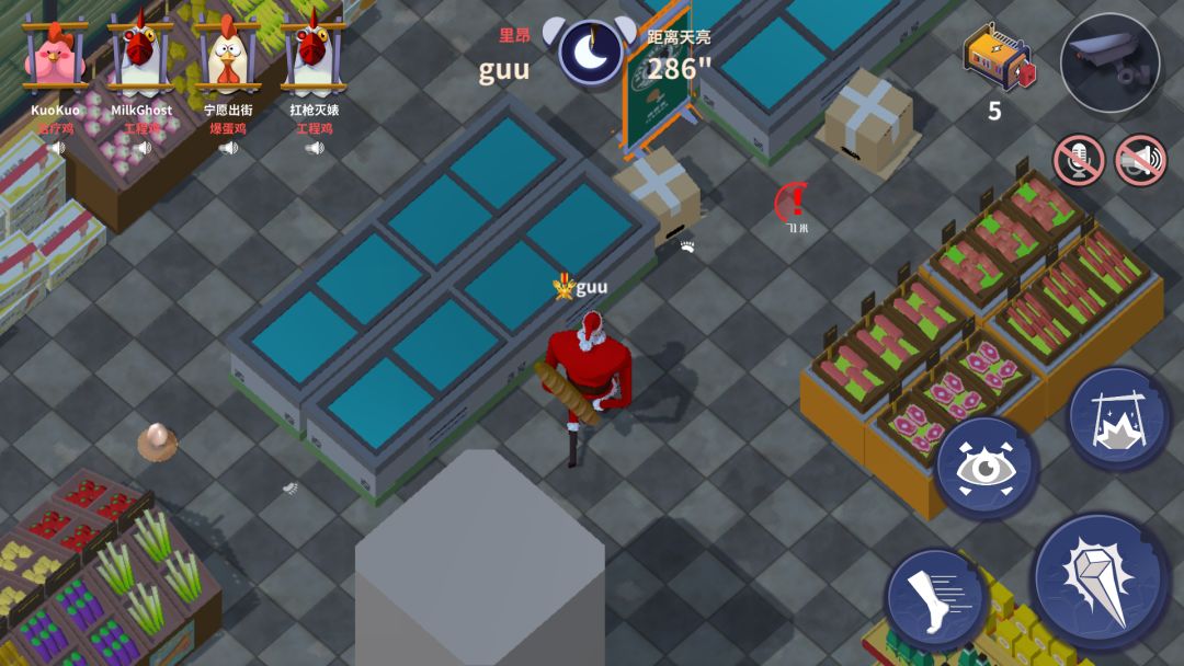 (1)开放新地图:大型超市 。 与农场截然不同的地形,对 逃生鸡 和 守夜者 都有全新的玩法。