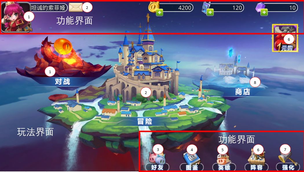 玩家可通过主界面进入游戏的各个功能&玩法界面