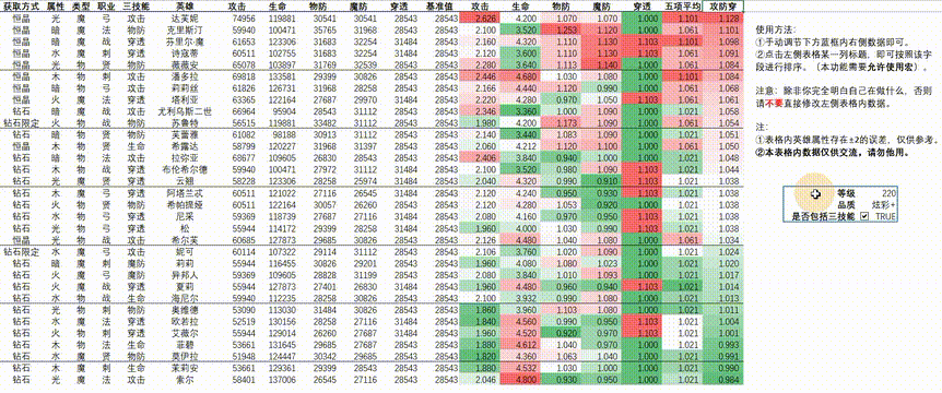 ⑦ 一个基于Excel实现的英雄属性速查表(大概是本攻略最有价值的东西了)