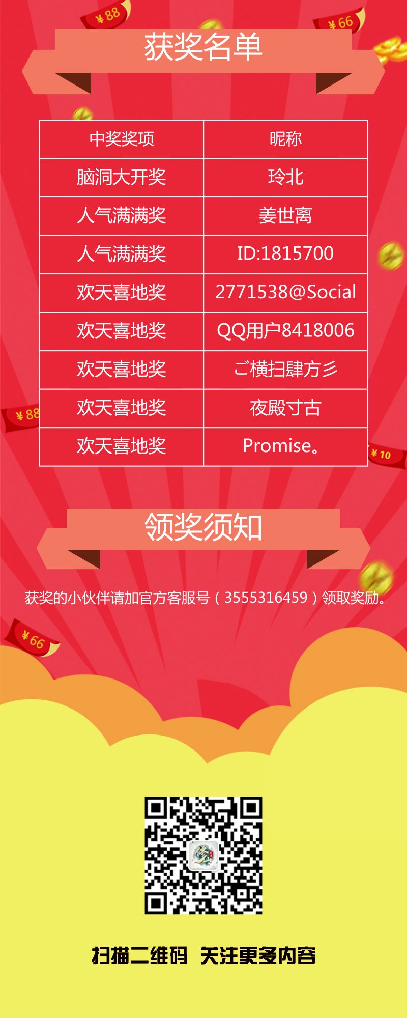 1、获奖的小伙伴请尽快添官方客服号(QQ: