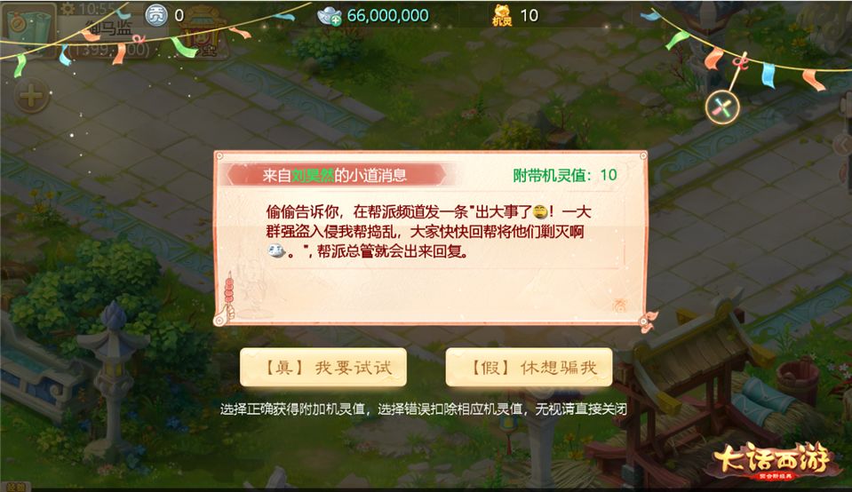 侠士们可以选择在帮派发布一条真假消息,看看帮派内的众人们是否有能力识破你的恶作剧。