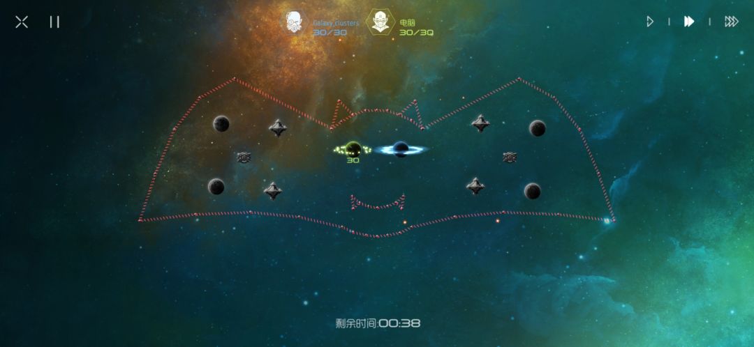 ③将30飞船派去与AI部队交战,并从己方星球不断加派飞船,直至胜利。 ·············3分