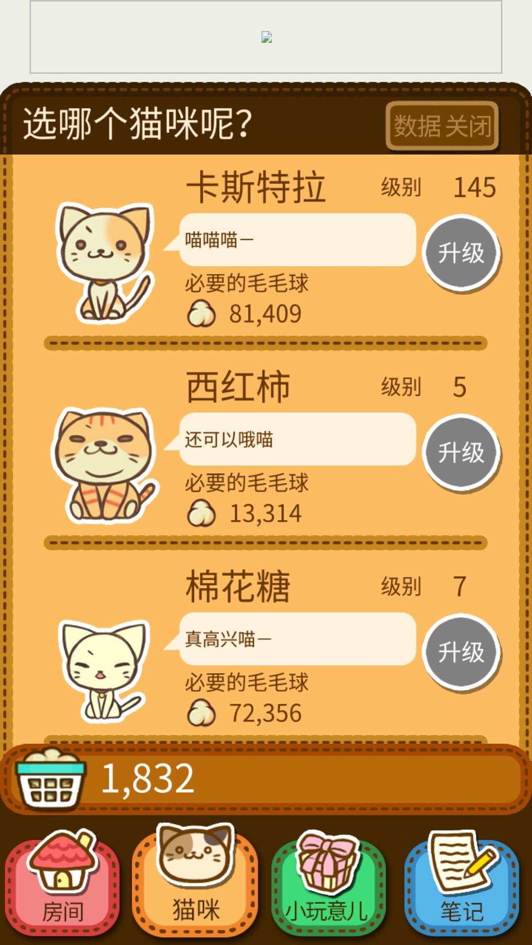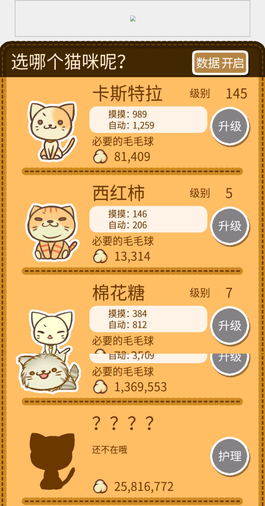 我把最原始的那个猫猫已经升到145了还是没满,想收集全部满级猫猫~