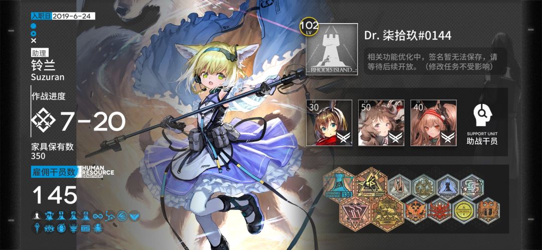 第一阶段,主线第四章之前,初期摸索阶段,主要摸索游戏机制,干员特性等。(一个完整队伍平均练度没有超过精一50级7级技能)