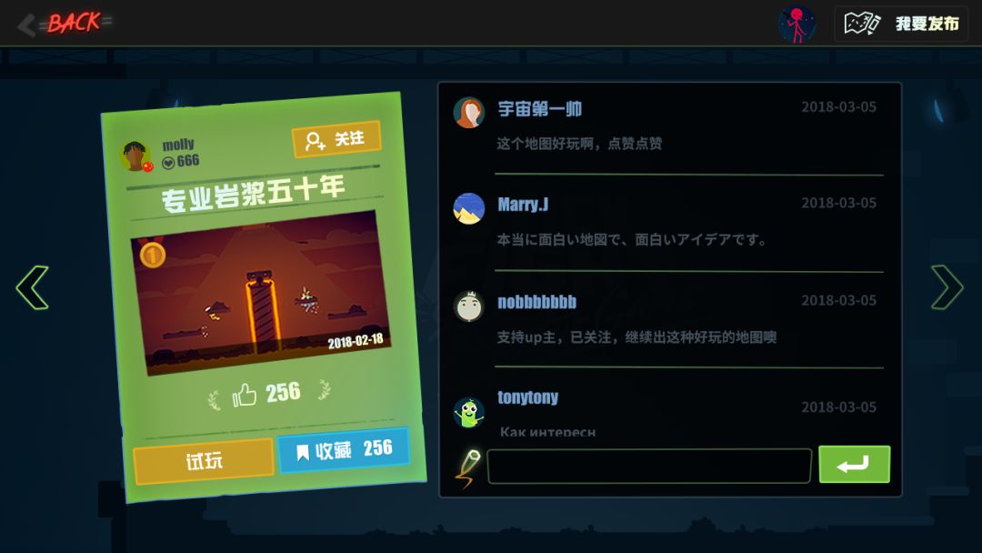 配合地图编辑器,《逗斗火柴人》还新设创意工坊。创意工坊是一个提供给火柴君们上传其所编辑的自定义地图的交流社区。全球火柴君都能在这里,分享自己的地图作品。创意工坊的推出,更进一步强化《逗斗火柴人》的社交属性,拉近陌生好友之间的距离。