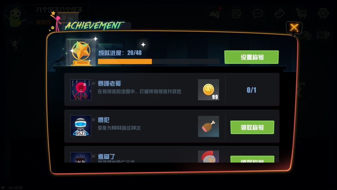 成就系统囊括了多种令人捧腹的设定。比如,击杀大厅NPC超过10次,火柴君们将收获一枚“冷酷无情”的认证;死于障碍物(激光、摆锤等)超过10次,火柴君们将喜提“死神来了”的称号。