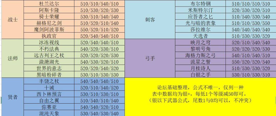 补充一下,银装材料末尾01的锻造实际是加50可做,其他末尾非01的加49,例如杜兰达尔,银装是451 461 491 451,银+就加上50变成501 511 541 501;湖光银装是491 481 471 461,银+加上49变成540 530 520 510。![[嗒啦啦2_乖巧]](https://img-tc.tapimg.com/market/images/e1c24f8566fda8255009cae7e503676c.gif)