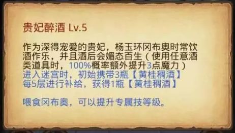 杨玉环曾以“回眸一笑百媚生,六宫粉黛无颜色”而“三千宠爱在一身”。我们知道,她不仅喜欢吃荔枝还喜欢饮酒。所以来到迷宫后,她爱喝酒的特征也是一点没变。