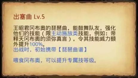 王昭君的技能能够大幅度的提升主动技能的威力,同时王昭君出战自带的琵琶曲谱,能够增加20%的主动技能累计速度,对着拥有主动技能的冈布奥来说,绝对是最强的辅助技能。