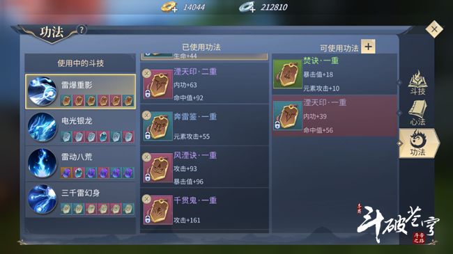 以下是雷族部分功法搭配推荐。