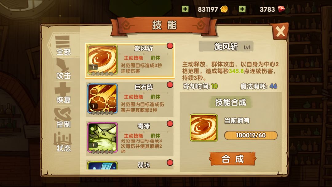 言归正传,我们设计了4类公共技能:攻击、恢复、控制、状态。暂时共计30种,后续当然是会增加。