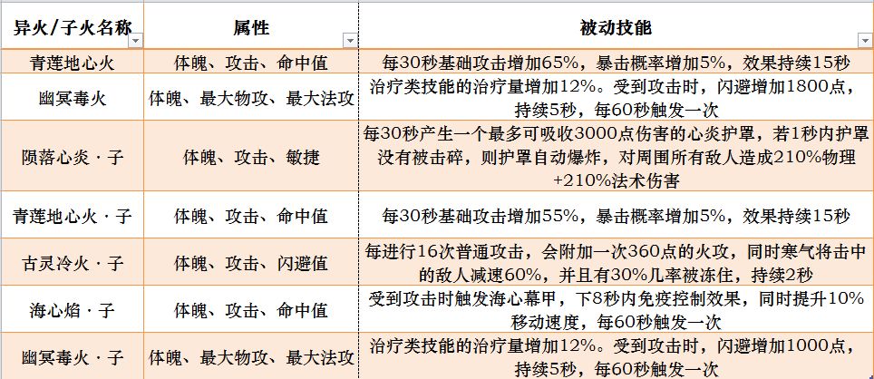 异火与子火拥有被动技能,并且基础斗气高,属性几乎适合所有职业,获得后可直接选择出战。