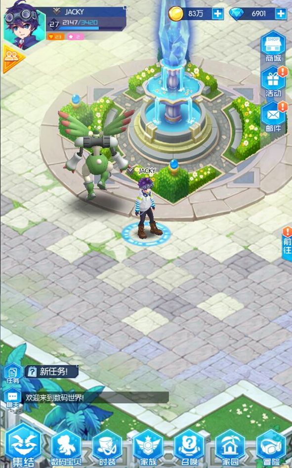 在《数码宝贝:相遇》里分为几个板块,集结,数码宝贝,时装,家族,召唤,家园,冒险。首先会出生在广场,广场上有试炼之岛,去提升经验的,神秘商店,可以买到各种难得的资源,冠军大赛,玩家间的排位赛。集结,最多六人组队获取资源的玩法还可以开聊天房。召唤,比较特色抽卡,直播抽卡可以抽30次,能让其他玩家围观,不过很难抽到SSR……家园就是可以自己种植各种资源也可以装扮,冒险,通关剧情每一关都有相应的奖励。主要讲讲数码宝贝培养方面的问题。