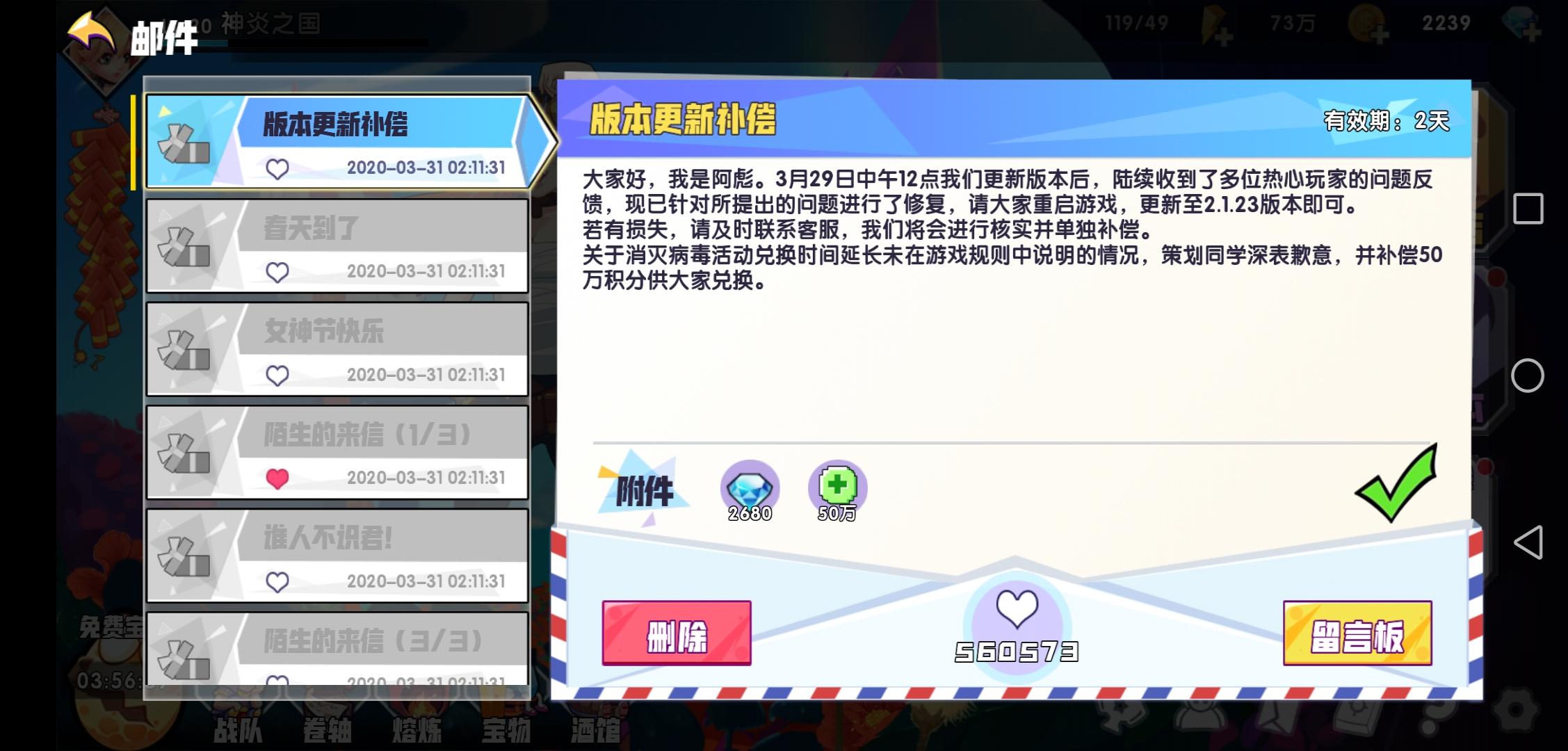 今天重新下回来玩,结果登入账号领完东西以后,重新上线,之前邮箱领的东西全没了