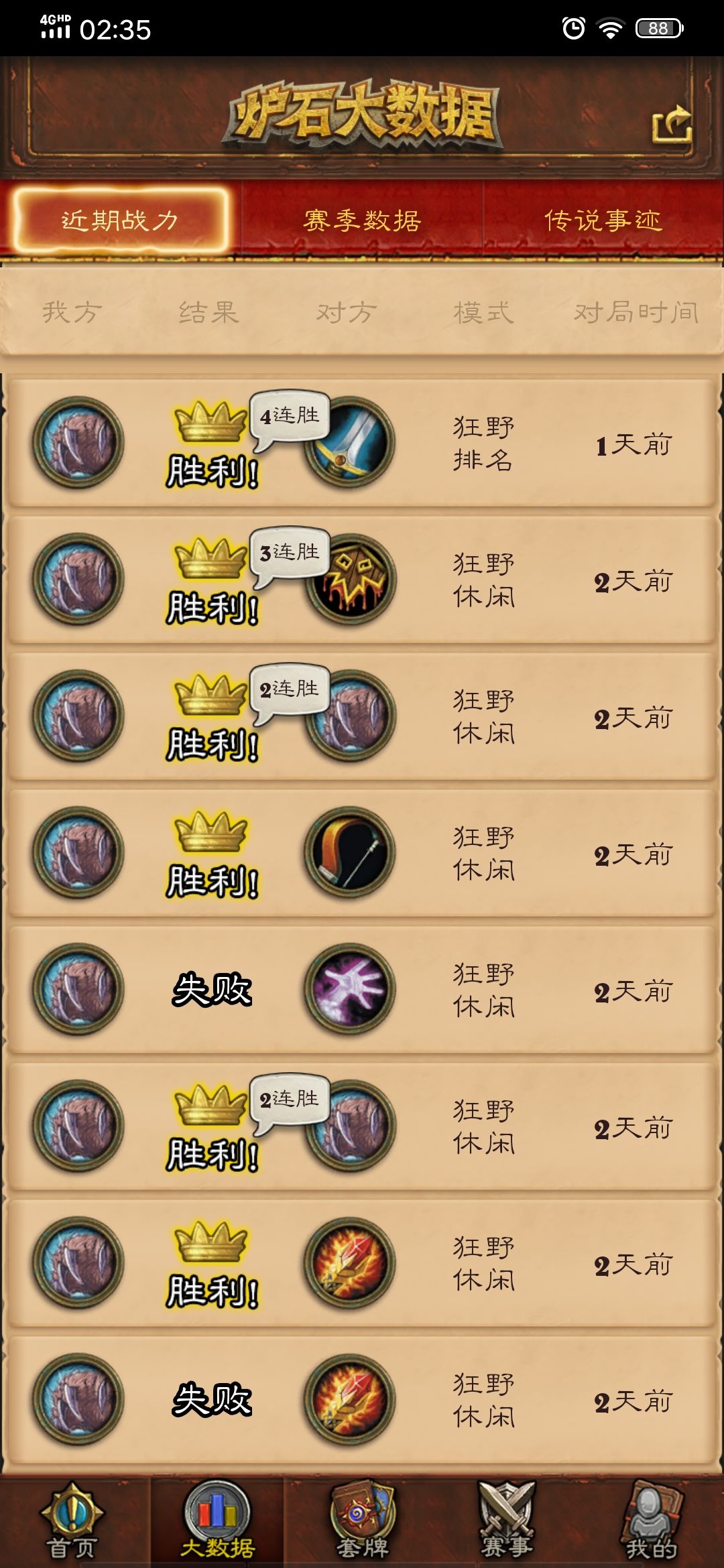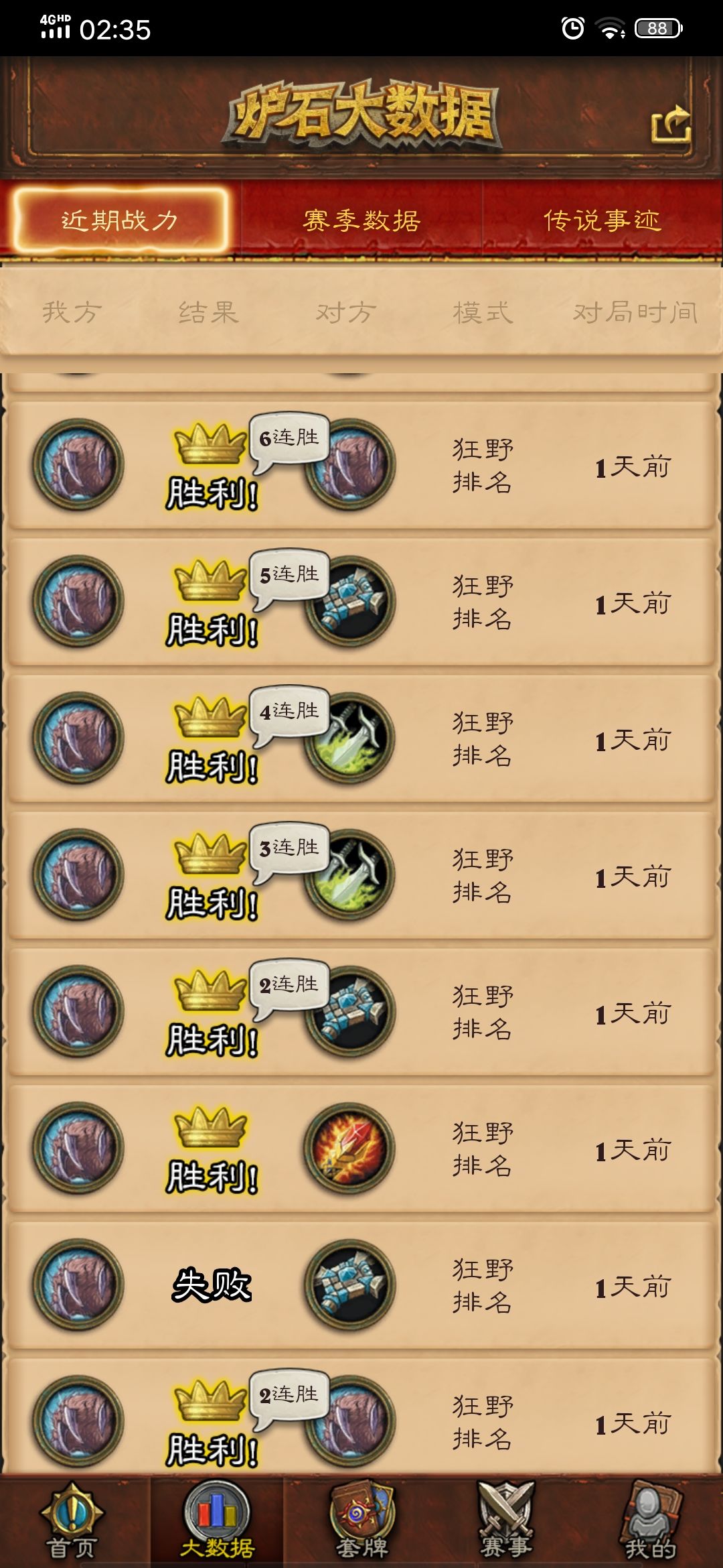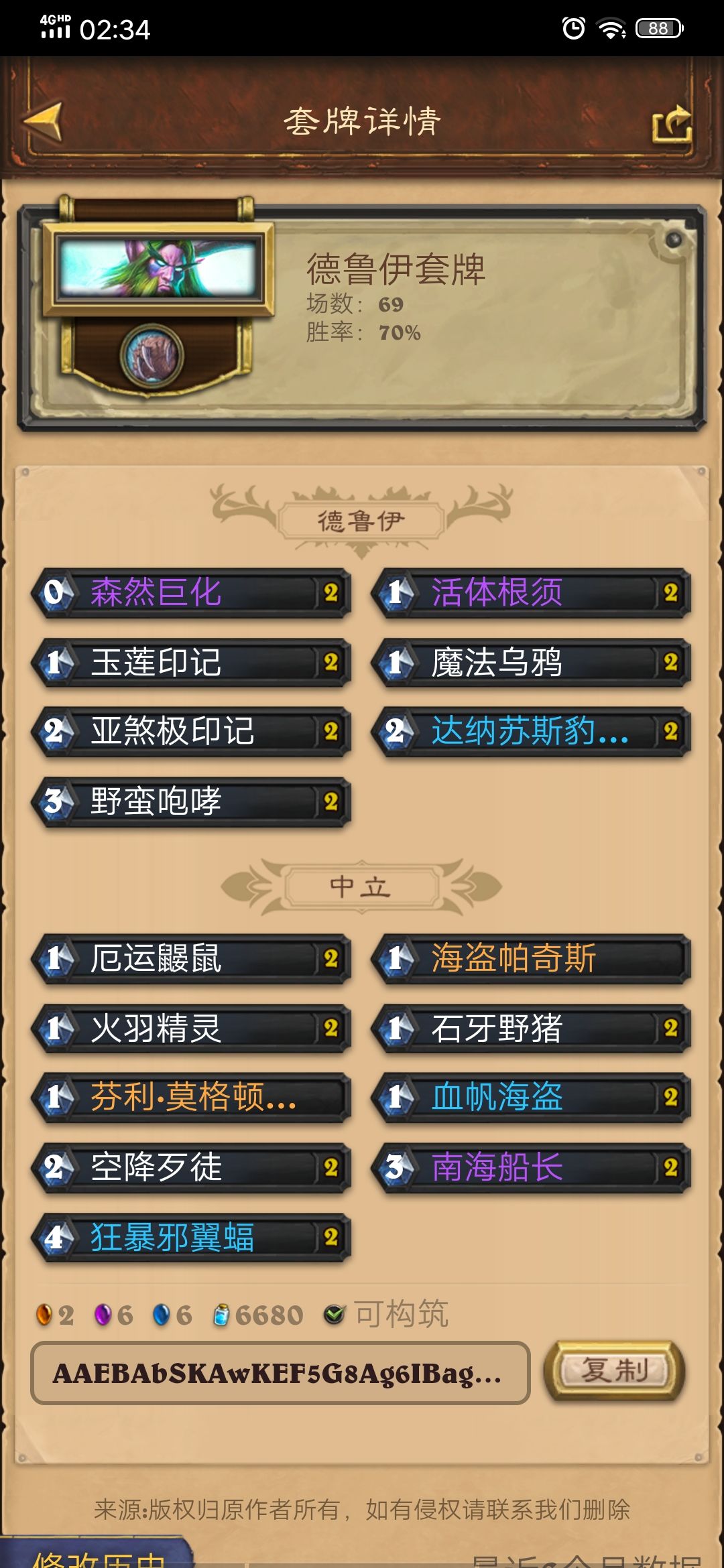 最后两天打的如果没算错的话总共用时间也不过两小时不过还打了三个小时的休闲去改良上手卡组,一开始也只是听说过快攻德这个卡组而已,由于本人非常喜欢二王子,是属于那种喜欢稳扎稳打,打身材模板超模的那种玩家,看到这套卡组之后让我想起了二王子术还没他那么多限制所以决定上手试一试,经过前后改良后得出了后面那一套,本套牌讲究的就一个胡字胡起来战士都给你活活踢死去,不过也是需要一种最基本的防解牌意识,如果没有的话会打的比较辛苦点,但至少比起其他节奏型快攻卡组来说更好掌握吧。这套卡组在我眼里和至暗术天胡卡组没什么两样,甚至可以成为毒瘤唯一较怕的可能就是海军和奇贼了吧,不过也就是仅仅比较怕而已大概四六开。